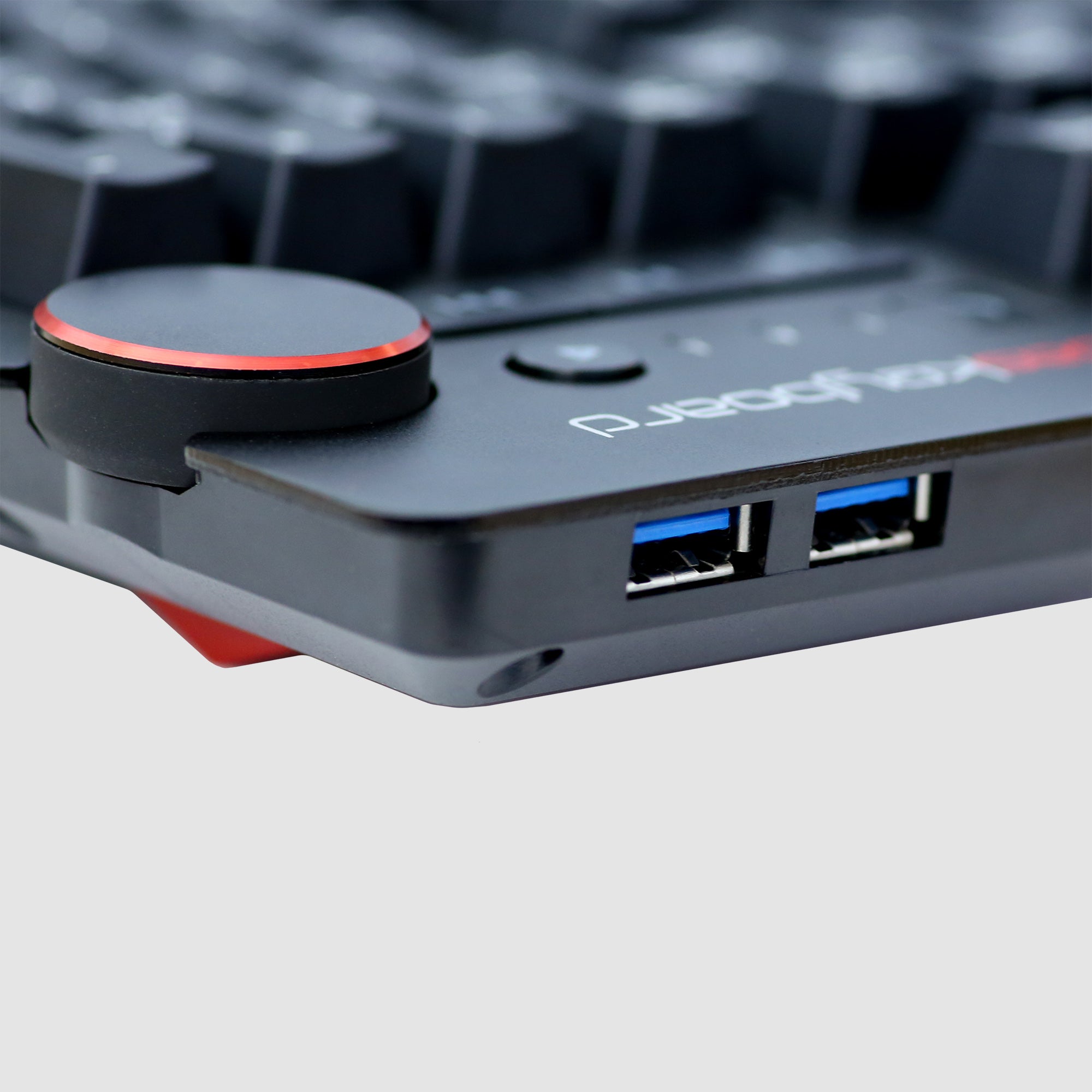 Das Keyboard 4 Professional sports a 2-meter (6.5ft) cable that goes through desk grommets to keep your workspace neat and tidy. Now equipped with only one USB cable to power the keyboard and USB hub at the same time.