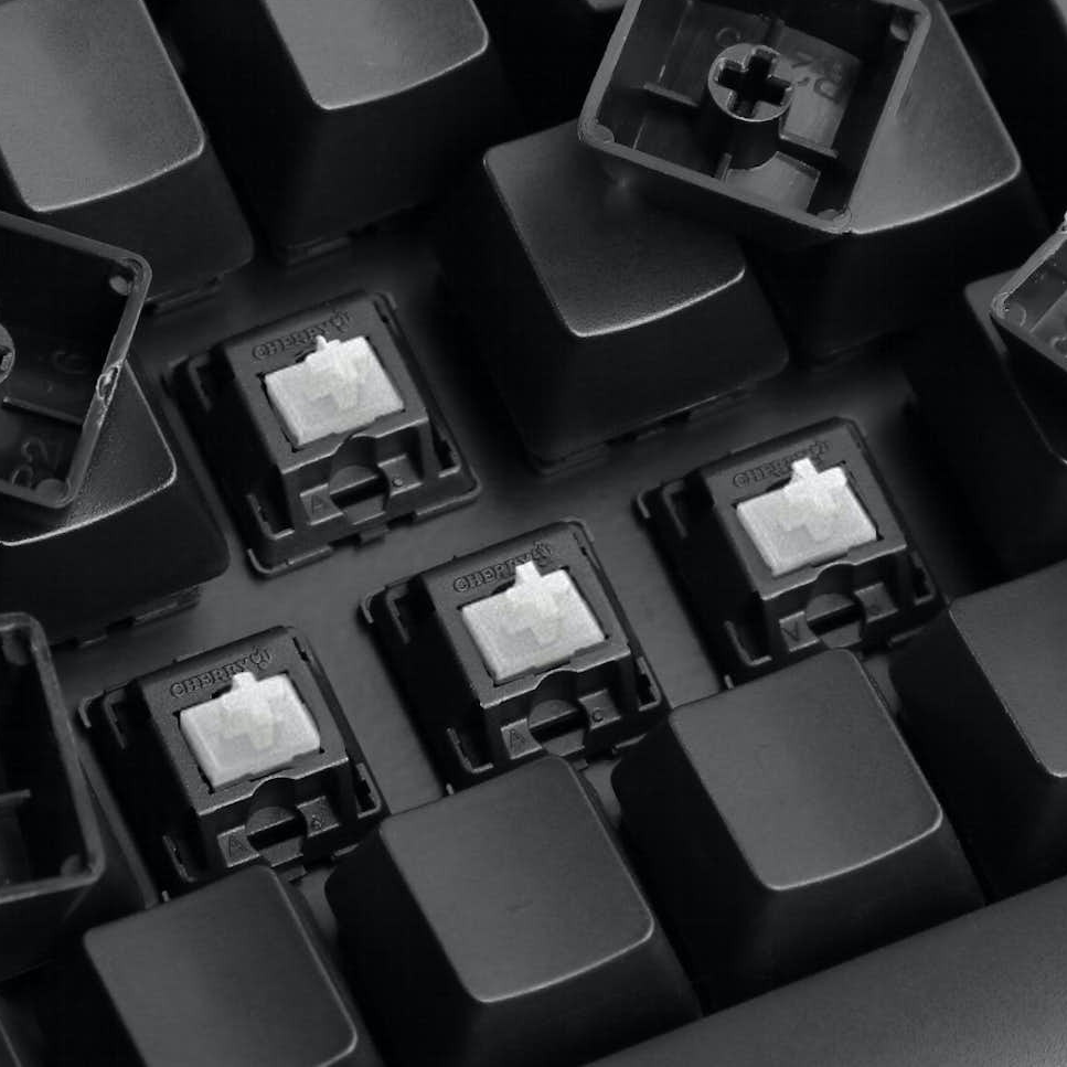 Meticulously crafted for the discerning typist, these switches offer a distinctive blend of tactility and serenity. With an actuation force of 65 cN, Cherry MX Clears provide a refined typing experience marked by gentle but perceptible tactile feedback, setting them apart from the subtler Cherry MX Browns. What truly distinguishes the Cherry MX Clears is their remarkable post-bump actuation force of 95 cN. This unique feature, cherished by many enthusiasts, serves as a barrier against accidental key presses, allowing you to type with precision and confidence without the need to bottom out. Experience the excellence of Das Keyboard's Cherry MX Clears, where precision meets tranquility.
