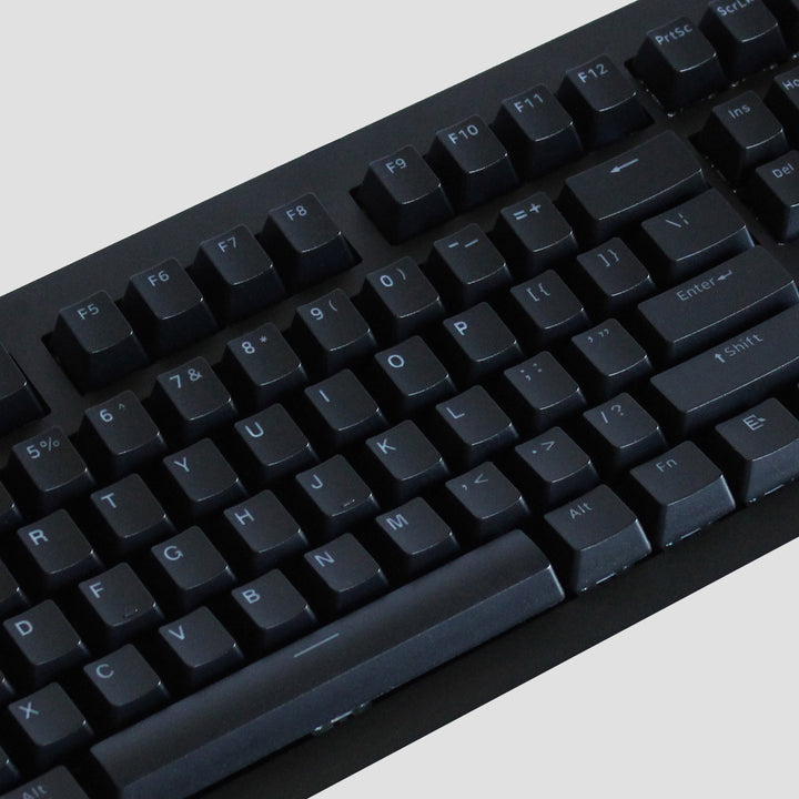 This black keycap set can be used on any standard MX layout and has white inscriptions. The outer layer is matte black, and the inner layer is translucent white, making it perfect for unlit, backlit, and RGB keyboards. Let your keyboard's lights shine through, or use this set on an unlit keyboard; either way, they will look and feel great while typing or coding.